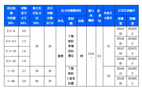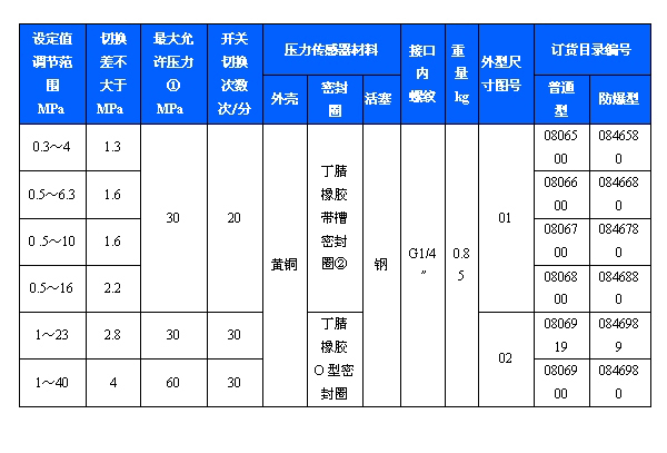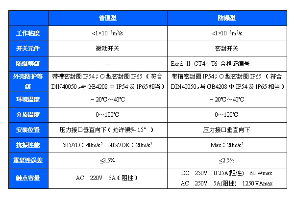 505/7D防爆壓力開關采用無泄漏活塞式的傳感器,可用于含油霧的壓縮空氣及其他對壓力傳感器材料無腐蝕作用的含油霧氣體和液壓油、水油乳濁液及潤滑性能良好的中性液體介質。505/7D防爆壓力開關的設定值可調,其調節范圍0.3 ~ 40MPa。