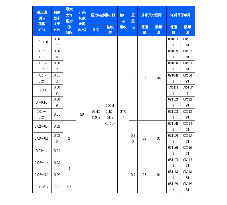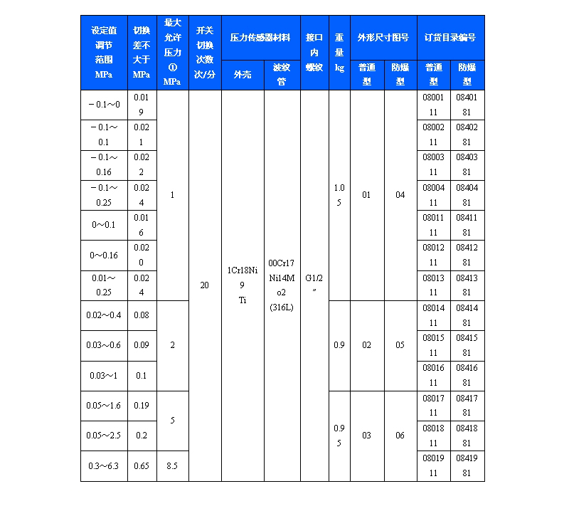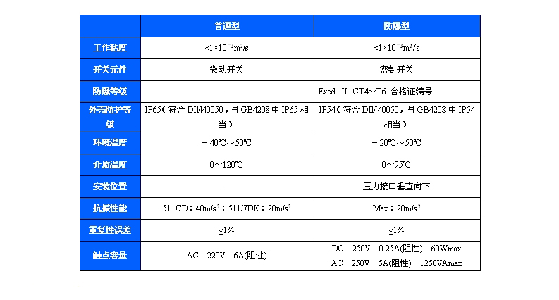 511/7D防爆壓力控制器采用波紋管式的傳感器,可用于腐蝕性氣體和液體介質。511/7D防爆壓力控制器的設定值可調,調節范圍-0.1~6.3MPa。