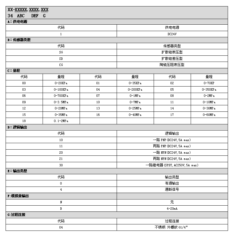 三、選型表